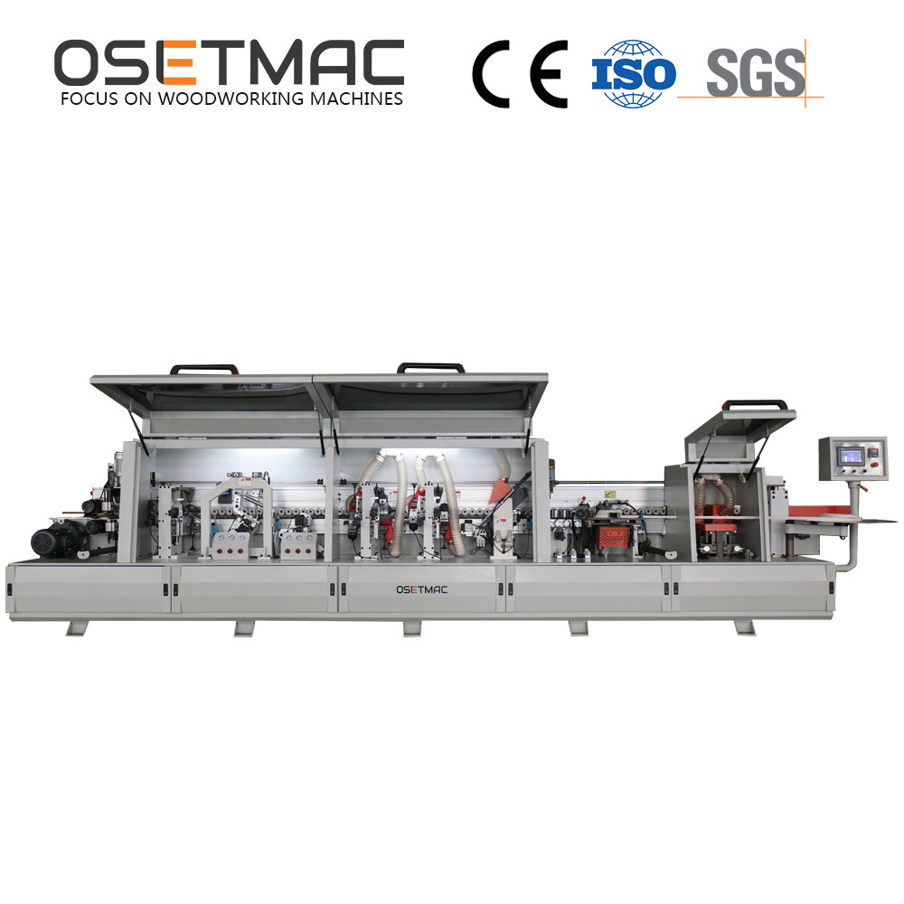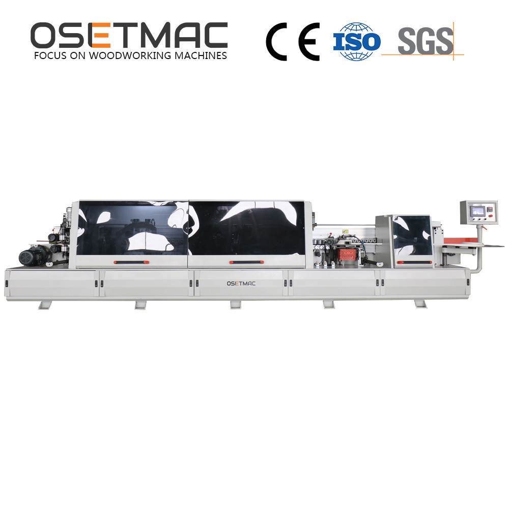 * 8 Funktionen: Vorfräsen - Kleben - Endschneiden - Rauschschneiden - Feinschneiden - Eckrunden - Schabeln - Polieren * Arbeitsspannung:380V/50HZ /3PH * DELTA- oder MCGS-Wechselrichter nach Wahl. * PLC-Touchscreen * CC-Hochgeschwindigkeitsmotor. * Die Fördergeschwindigkeit kann von 13-25 m/min eingestellt werden. * Honeywell-Reiseknopf. * Air Tac-Solenoidventil, Luftflasche, Öl-Wasser-Trennschalter.* mit automatischem Ölzufuhr. * 14 mm hohe Stahlplatte für die gesamte Maschine. * In der Maschine sind Lichter montiert. * Unterstützung der Anpassung an das Aussehen der Maschine.