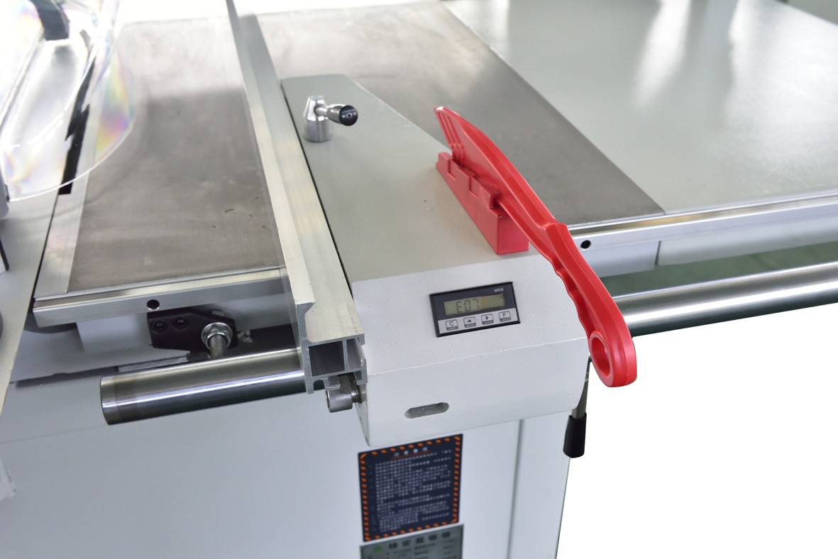 *Full Digital readout in this machine * Full electric lifting for main saw blade and scoring saw blade and also tilting. * This machine uses linear guideway to lift the saw blade. * All bearings in this machine are all imported SKF brand. * The table is made of fully-extruded, anodized aluminum. * With cast-iron main table and broaden extension table. * Fine adjustment range is between 0-10mm.